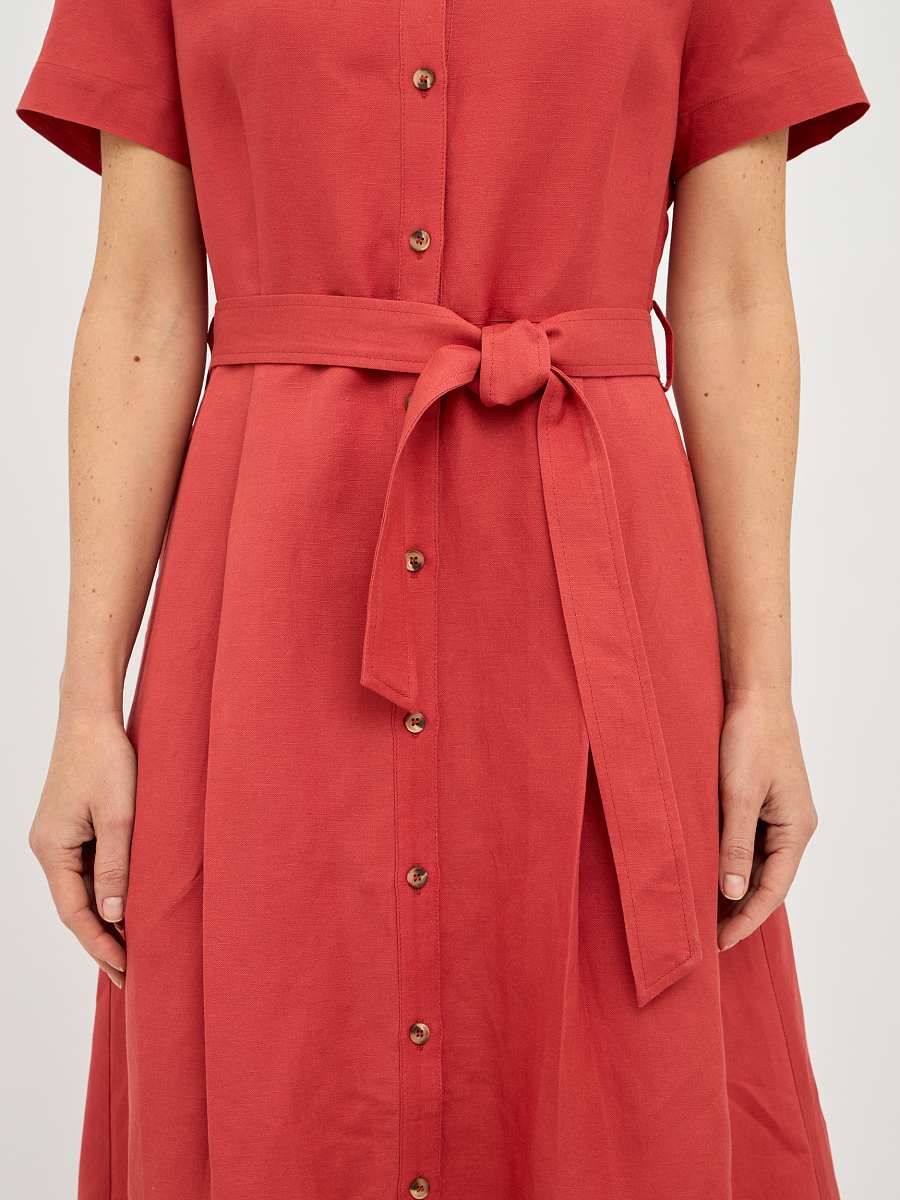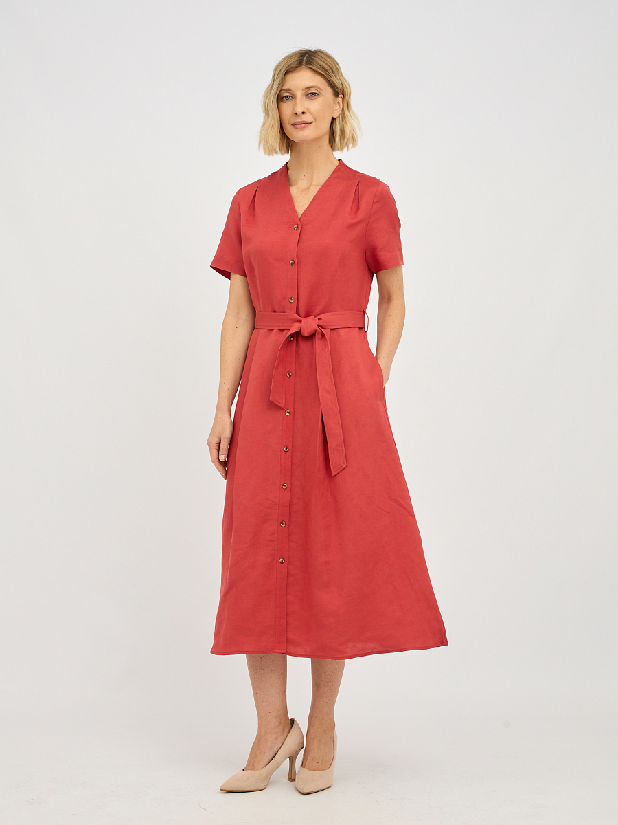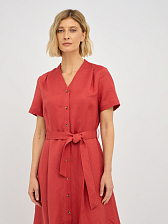 Это изысканное платье на пуговицах с поясом, воплощающее элегантность и комфорт, станет вашим идеальным выбором для любого случая. Его крой, дополненный эффектным поясом, прекрасно подчеркивает достоинства фигуры, создавая женственный и утонченный силуэт.