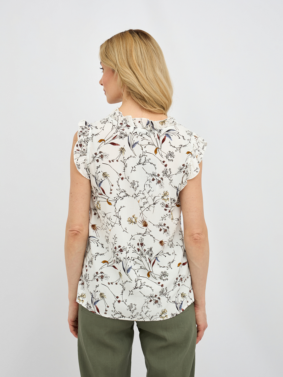 Укороченные рукава придают модели современный и стильный вид, а также делают её идеальной для теплых дней. Растительный принт добавляет нотку свежести и романтики, подчеркивая вашу индивидуальность и женственность.