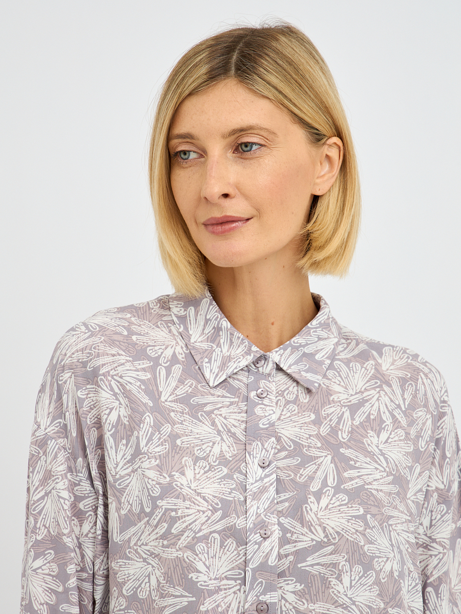блузка женская в сиреневом цвете из вискозы с растительным принтом