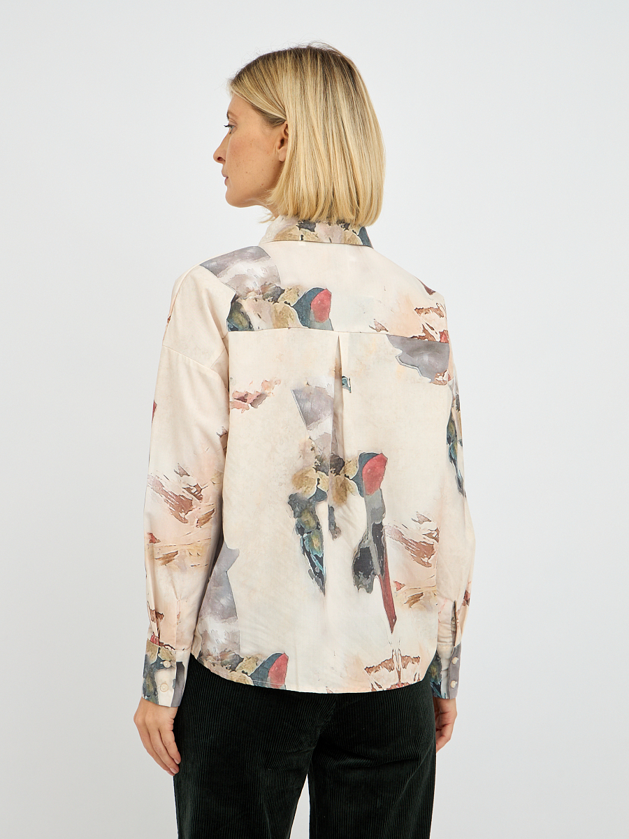 Свободный крой рубашки обеспечивает свободу движений и комфорт, позволяя вам чувствовать себя уверенно в любой ситуации — будь то деловая встреча, прогулка по городу или вечерняя встреча с друзьями. Легкая ткань создает ощущение невесомости, а стильный принт добавляет изюминку вашему образу.
