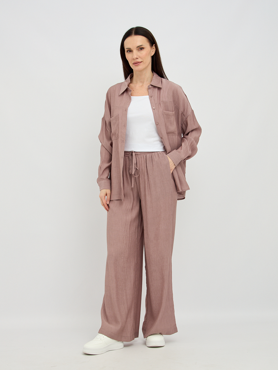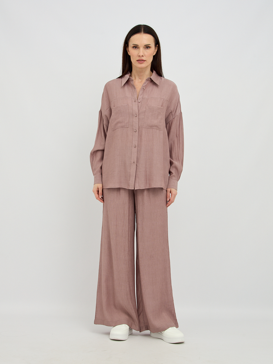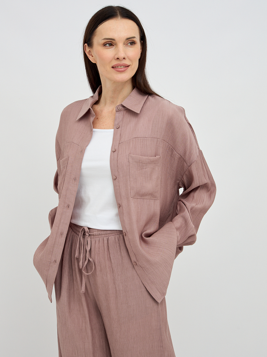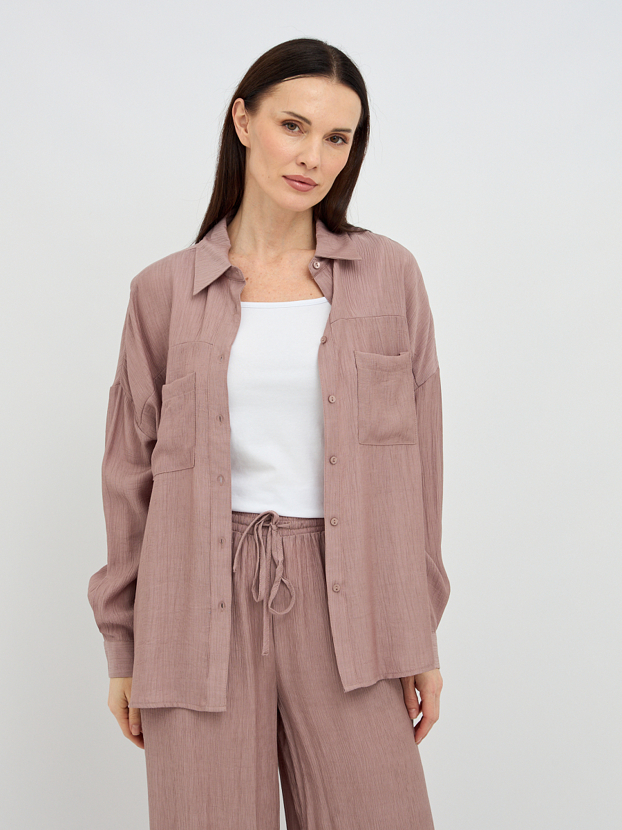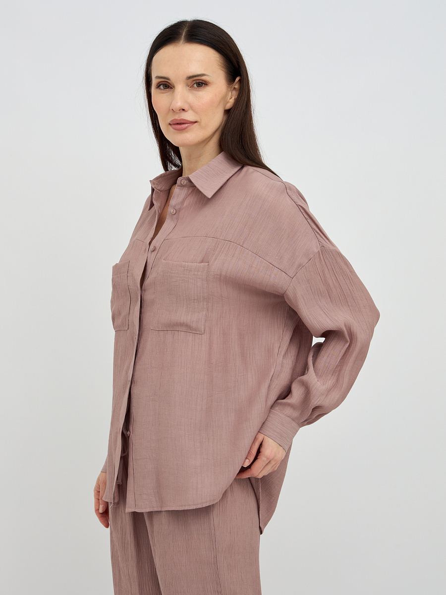 Уникальная фактура жатой ткани придает блузке особый шарм и визуальную глубину, скрывая мелкие несовершенства и добавляя образу элегантности. Свободный крой создает непринужденный и расслабленный силуэт, который подходит для любого типа фигуры, обеспечивая максимальный комфорт и свободу движений.