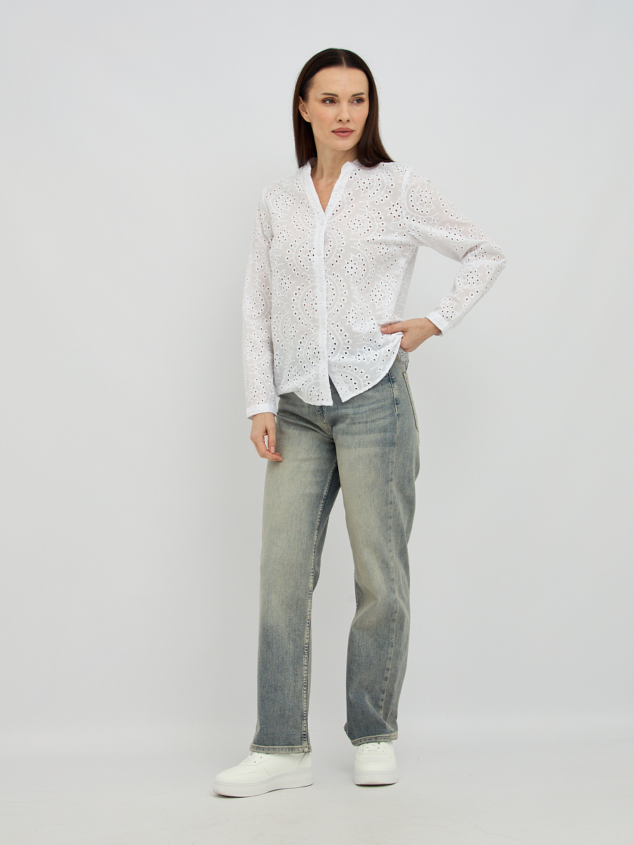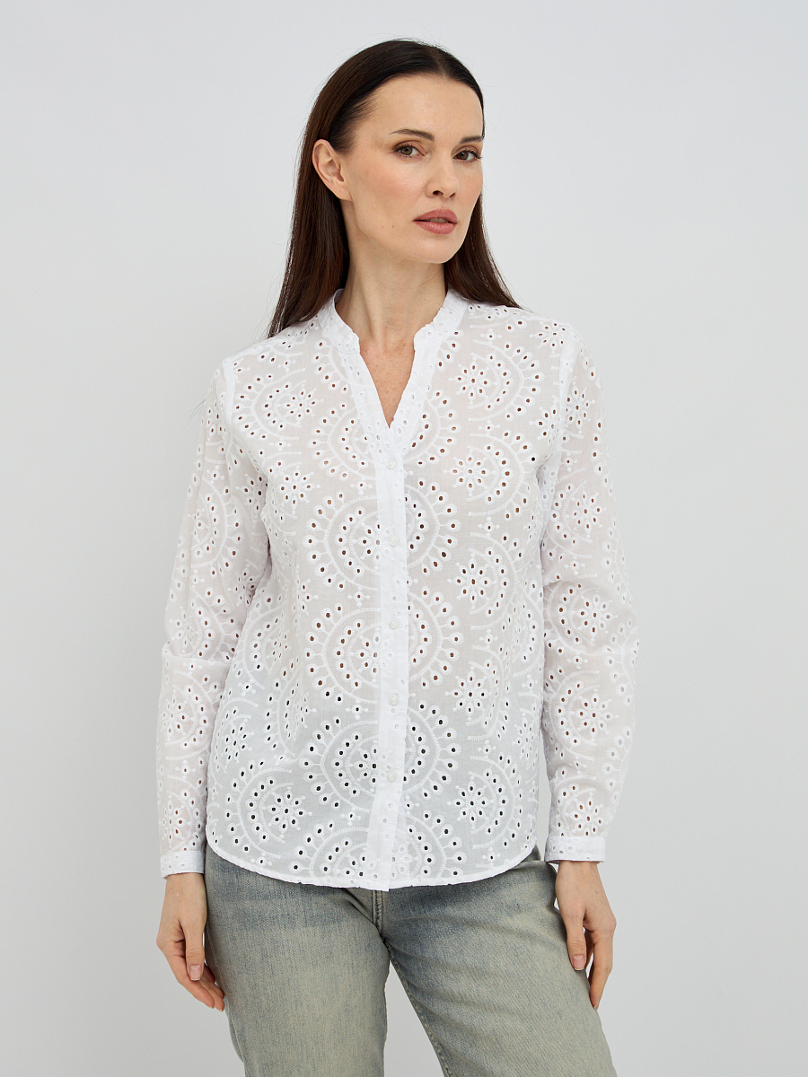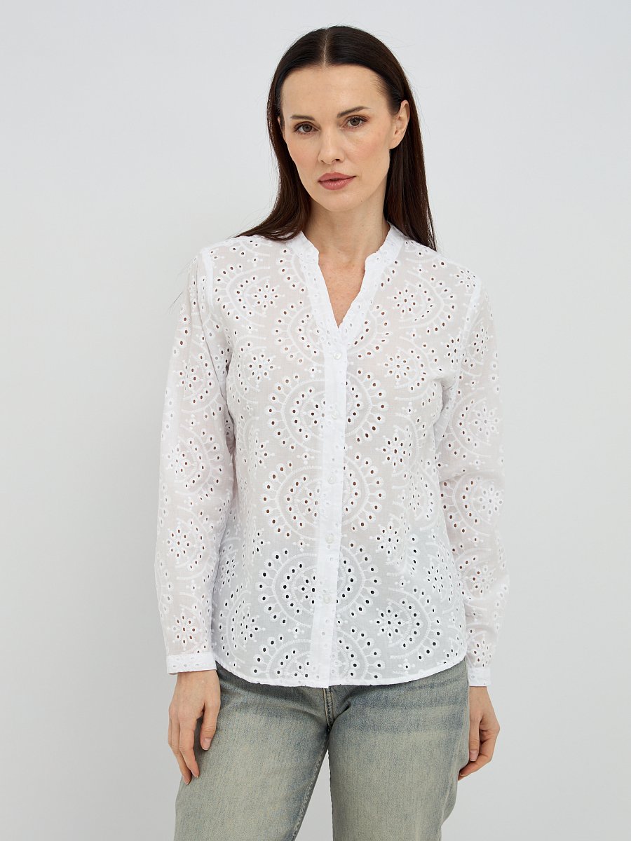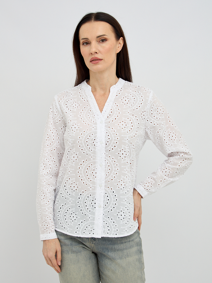 Нежный цветочный узор, созданный перфорацией, добавляет изделию изысканности и объема, превращая обычную блузку в настоящее произведение искусства. Такой дизайн не только придает образу легкости и воздушности, но и обеспечивает дополнительную вентиляцию, что является неоспоримым преимуществом в теплую погоду.