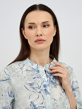Эта изысканная женская блузка в бело-голубой гамме, украшенная нежным цветочным принтом, станет воплощением вашего элегантного стиля.