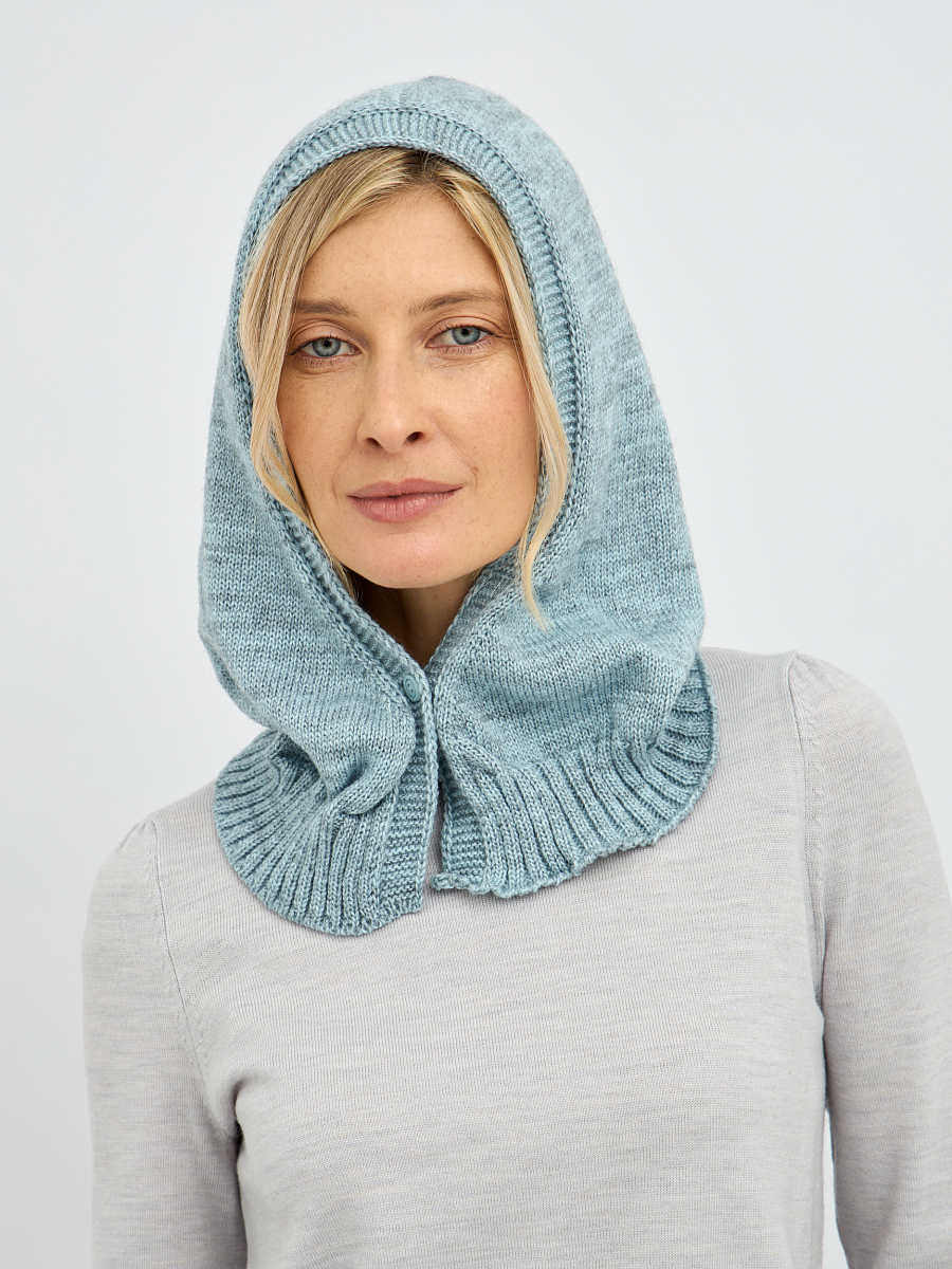 Удобная застежка на пуговицу позволяет регулировать посадку и создавать различные варианты ношения. Оригинальная текстура вязки придает капору изысканность и привлекательность.