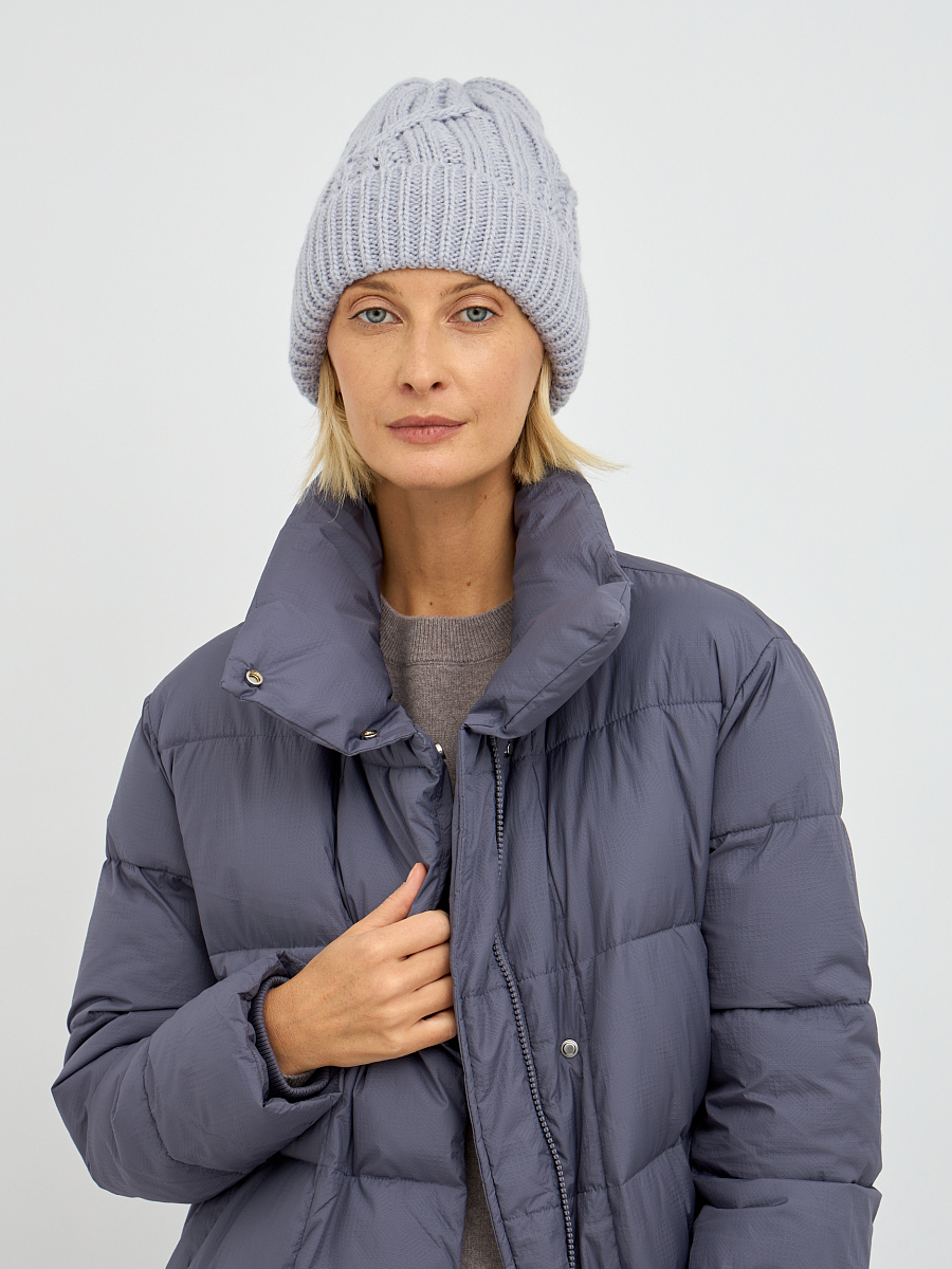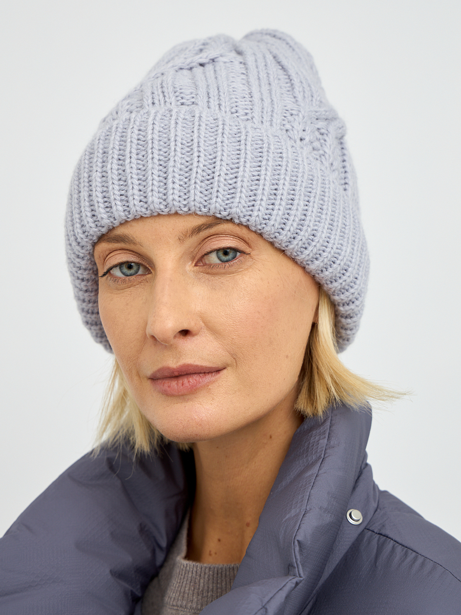 Элегантная женская шапка с объемной вязкой "косы" станет стильным и уютным дополнением к вашему зимнему образу.