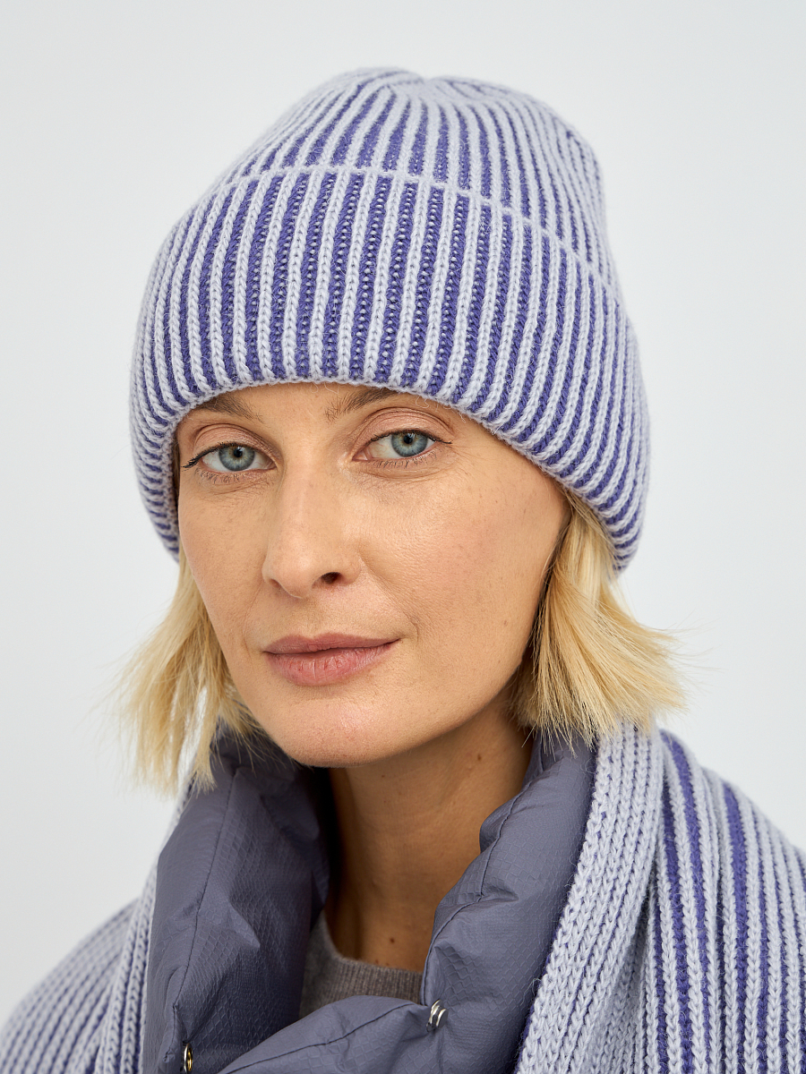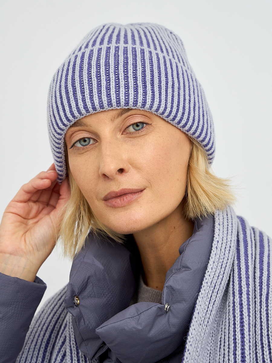 Дизайн в рубчик придает шапке стильный и современный вид. Она легко сочетается с любой верхней одеждой, будь то пальто, пуховик или куртка. Бини плотно облегает голову, защищая от ветра и холода, при этом не сдавливая её. Универсальный сиреневый оттенок добавит нежности и свежести в ваш образ.
