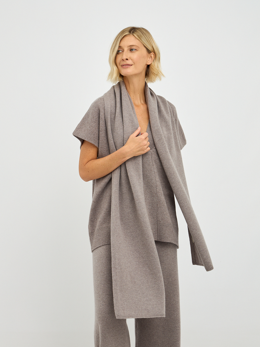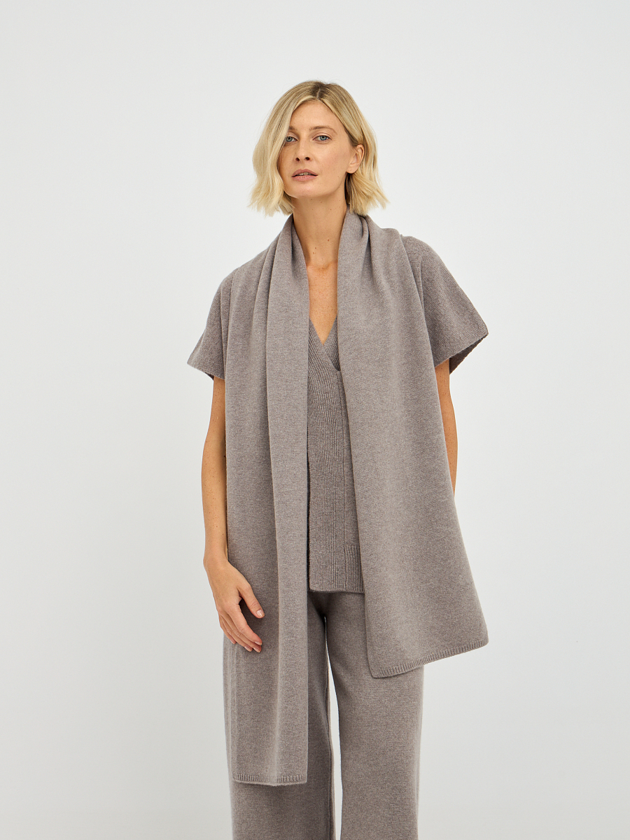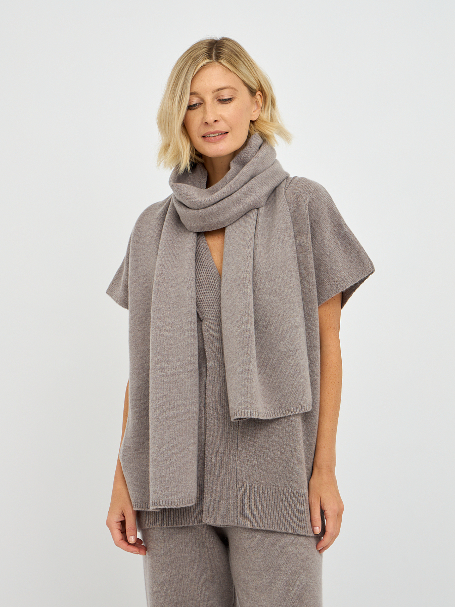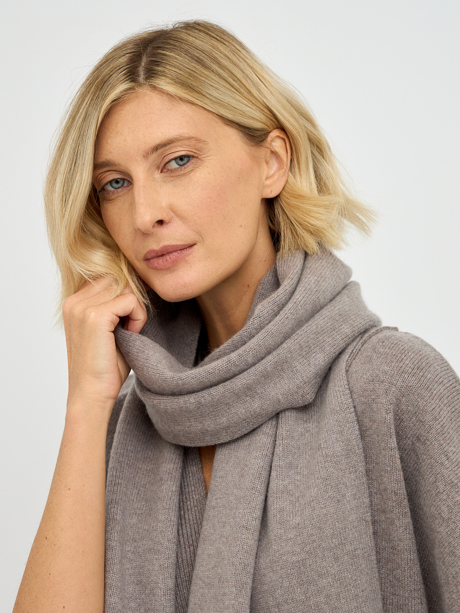Шарф представлен в двух оттенках: нежном молочном и утонченном фанго. Молочный цвет добавляет свежести и легкости, идеально сочетаясь с любыми нарядами, от классических до повседневных. Фанго, в свою очередь, привносит в образ нотки тепла, что делает его универсальным выбором для создания стильных комплектов.