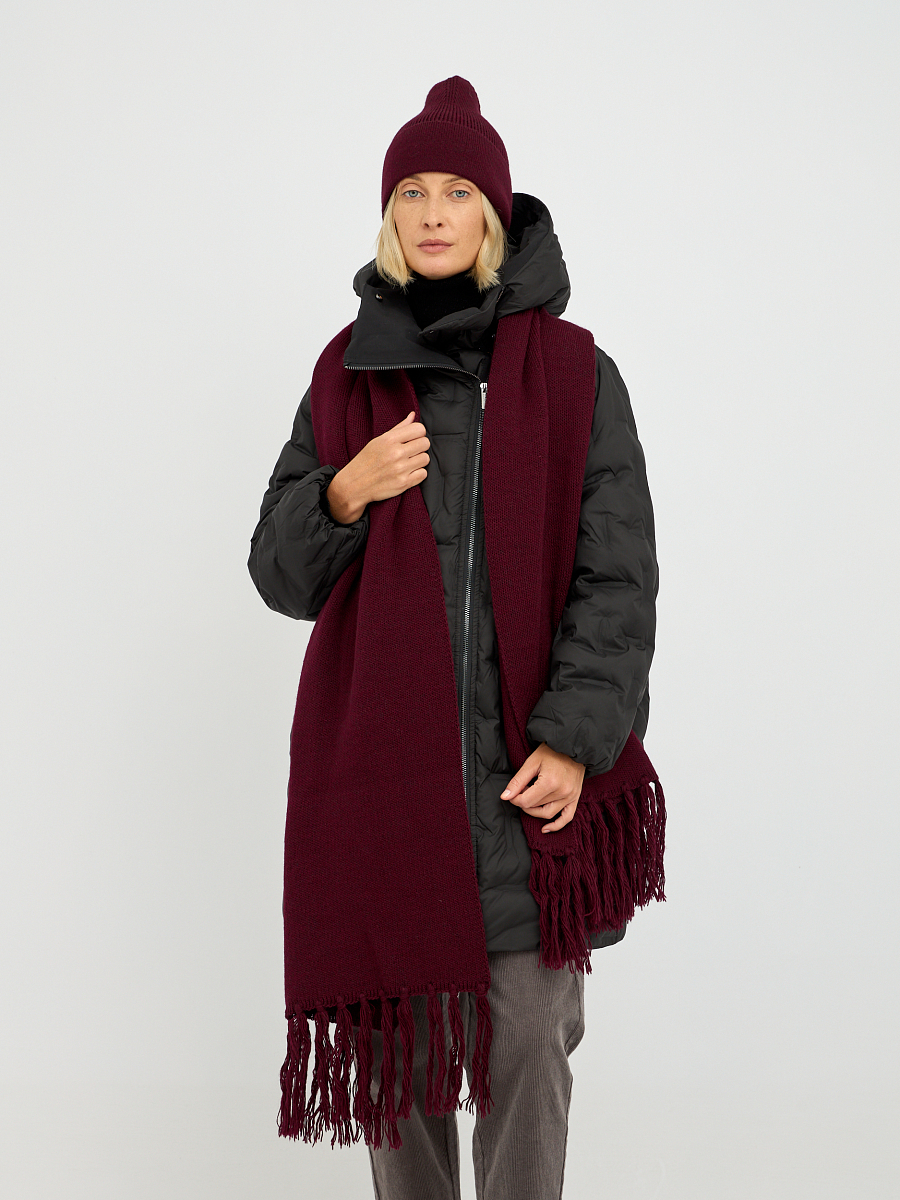 Шарф выполнен из шерсти и акрила, он согревает и дарит ощущение мягкости на коже. Шерсть обеспечивает тепло и уют, а акрил делает палантин более прочным и простым в уходе, предотвращая усадку и выцветание.