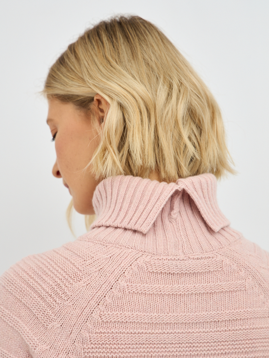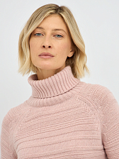 Эта женская водолазка в нежном розовом оттенке создана для комфортных и стильных образов на каждый день. Модель выполнена из мягкого объёмного трикотажа с выразительной фактурой — чередование горизонтальных рельефных полос делает дизайн интересным и подчёркивает современный характер изделия, сохраняя при этом его нежность и лаконичность.