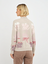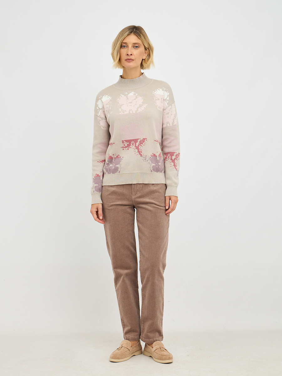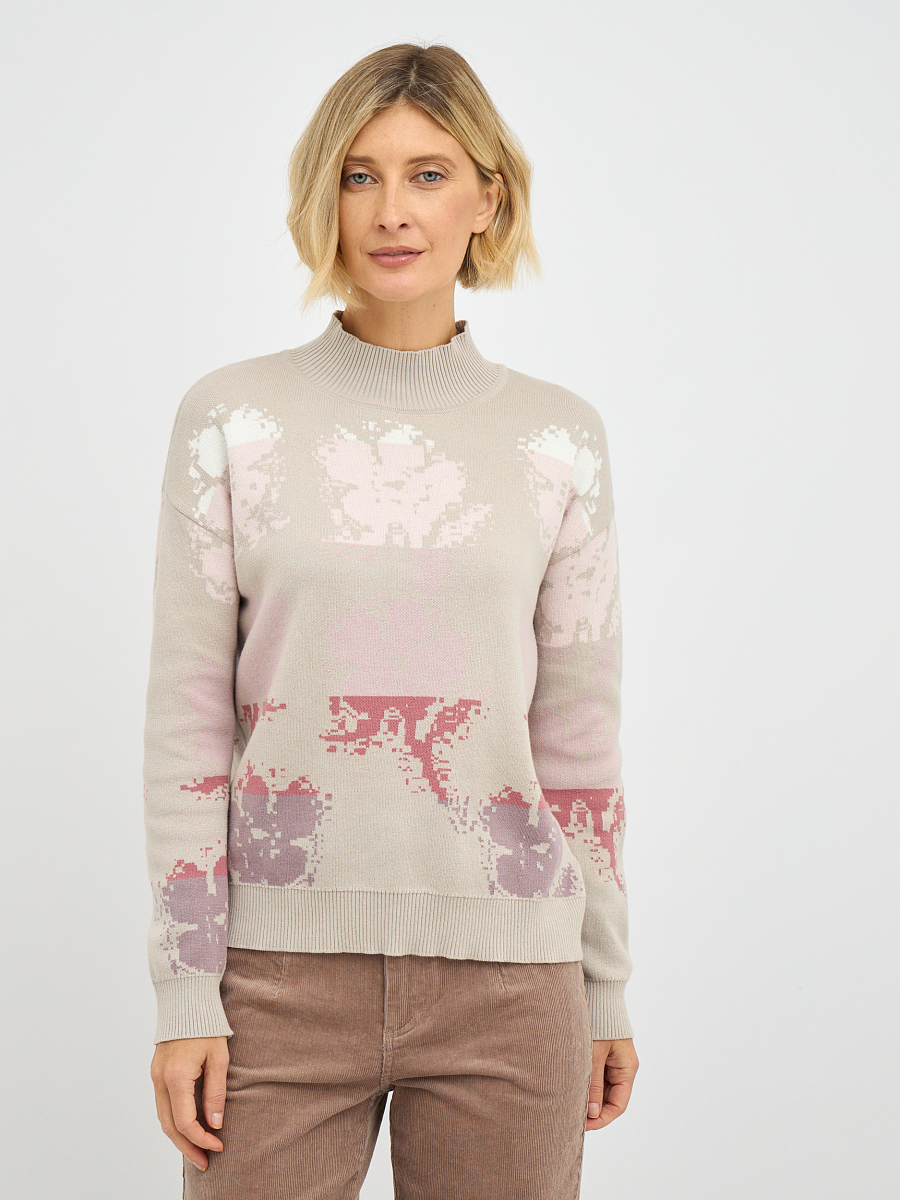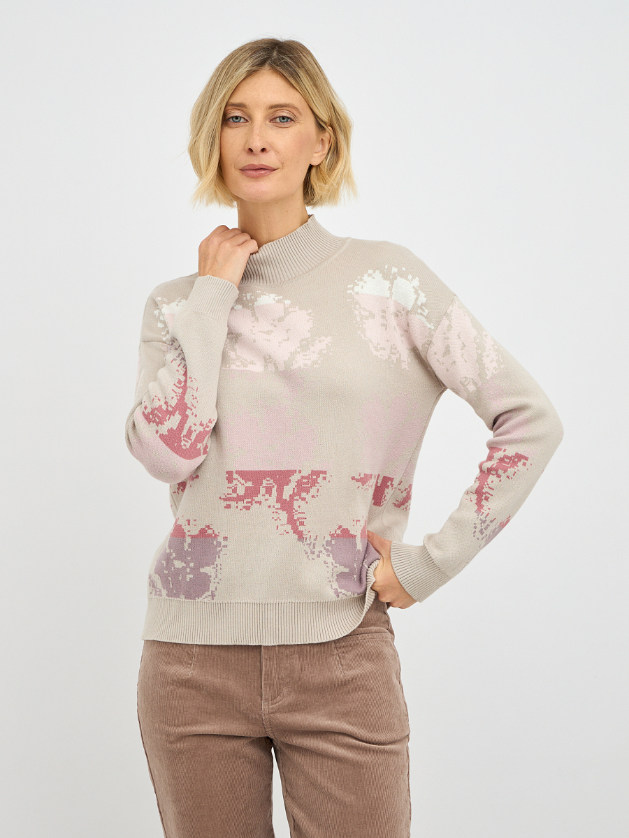 Привлекательный цветочный принт, выполненный в нежных оттенках, придает водолазке особый шарм и романтичность. Легкие, словно акварельные, цветы органично вписываются в базовый бежевый фон, создавая гармоничное и изысканное сочетание, которое не останется незамеченным. Высокий воротник мягко облегает шею, добавляя образу элегантности и защищая от холода, при этом не стесняя движений. Классический крой и универсальный бежевый цвет делают эту модель легко сочетаемой с различными элементами гардероба, от джинс и брюк до юбок.