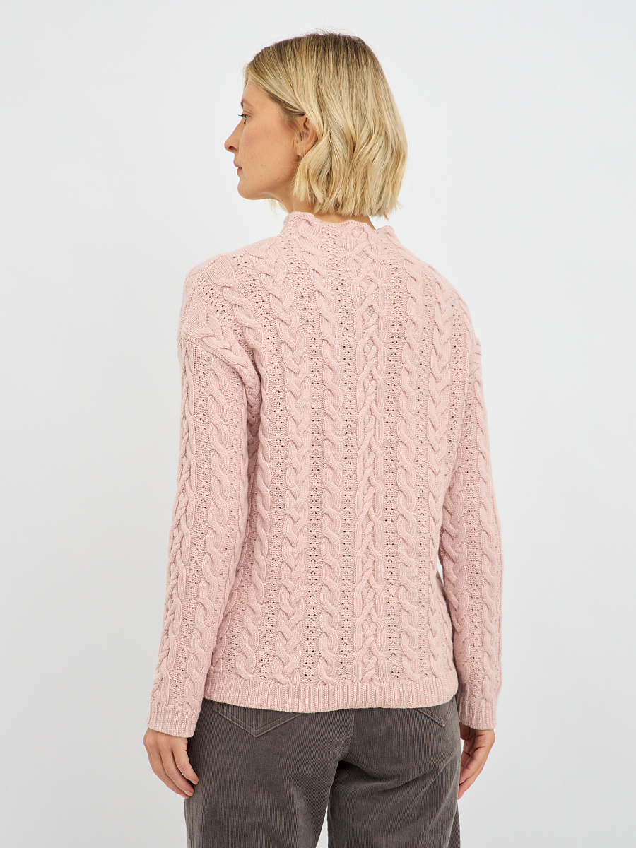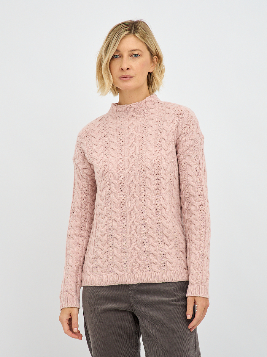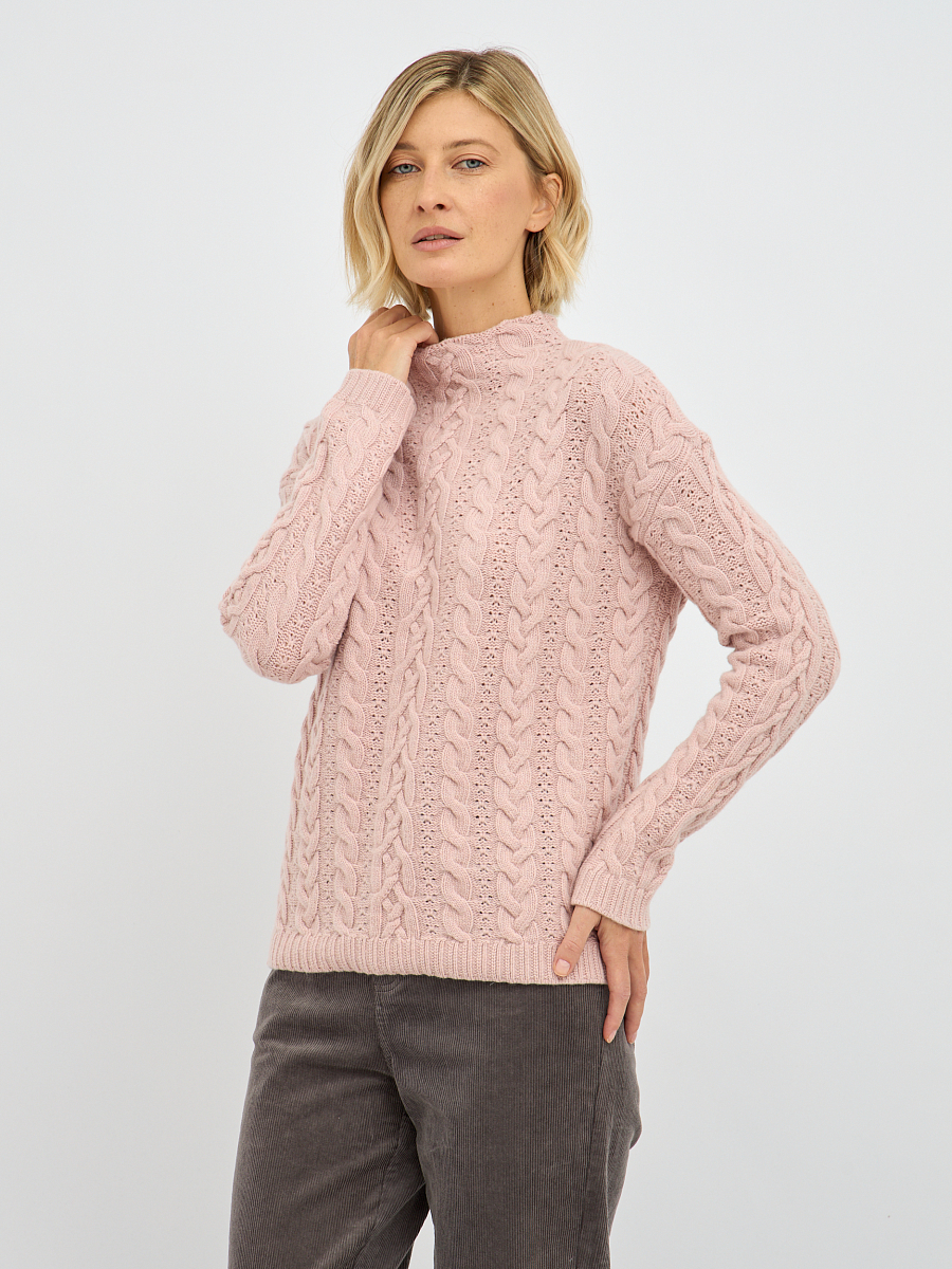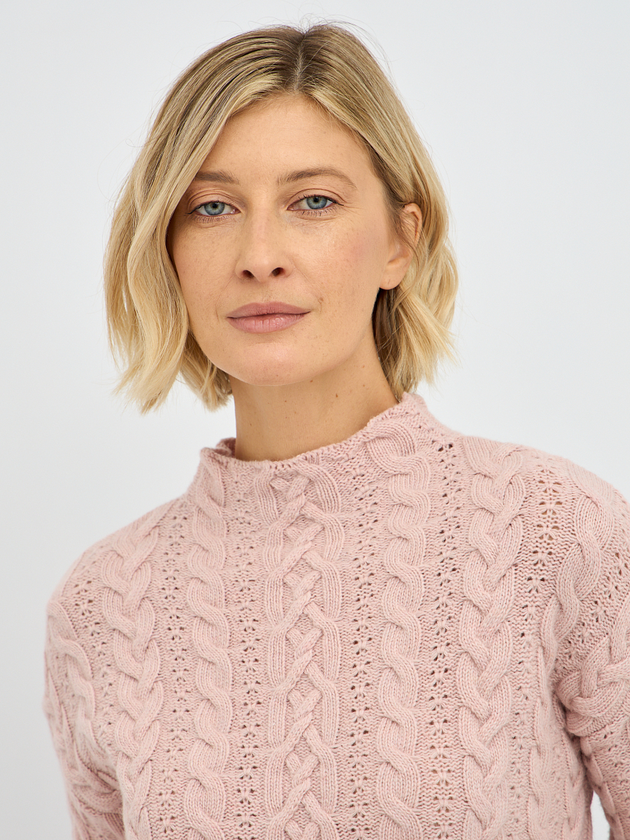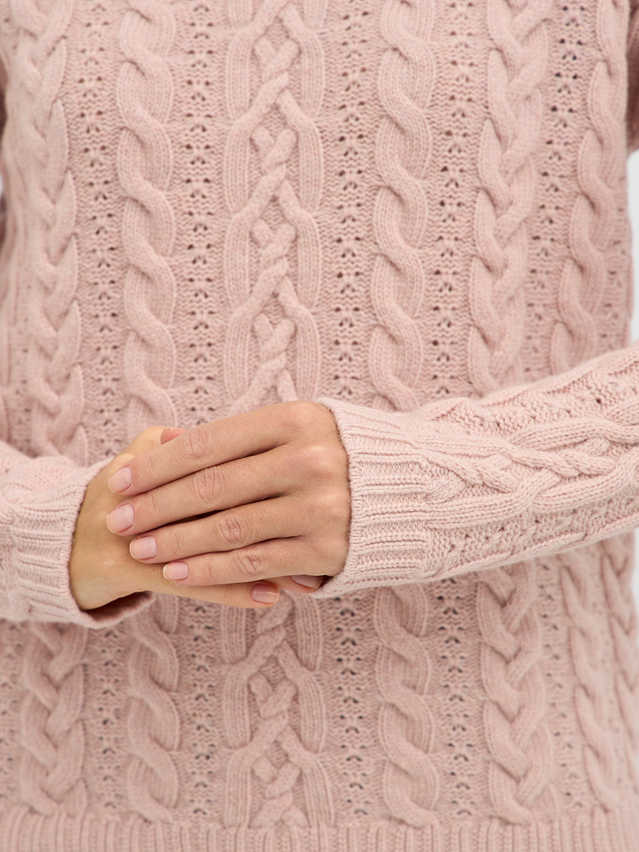 Утонченный плетеный узор создает эффектный рельеф, придавая водолазке изысканность и глубину. Классический крой делает его универсальным элементом, который легко впишется как в повседневные, так и в более нарядные образы. Нежный, пудровый розовый цвет излучает женственность и утонченность. Он добавит вашему образу нотку романтики и легкости, освежит лицо и поднимет настроение.