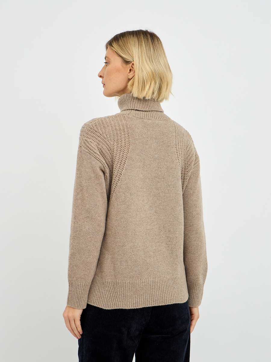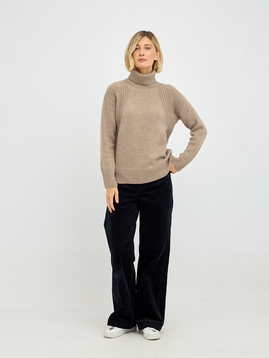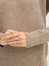 Особое внимание заслуживает дизайн – объемная вязка создает красивую текстуру, которая придает свитеру визуальную глубину и фактурность, делая его более интересным и выразительным.
