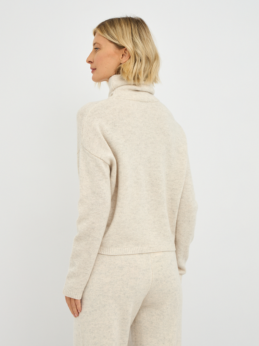 Водолазка выполнена в современном укороченном крое, который создает эффектный силуэт. Высокий ворот не только добавляет изысканности, но и обеспечивает дополнительное тепло в прохладные дни. Спущенная линия плеча придает модели расслабленный и уютный вид, что делает её идеальной для создания как повседневных, так и более нарядных образов.
