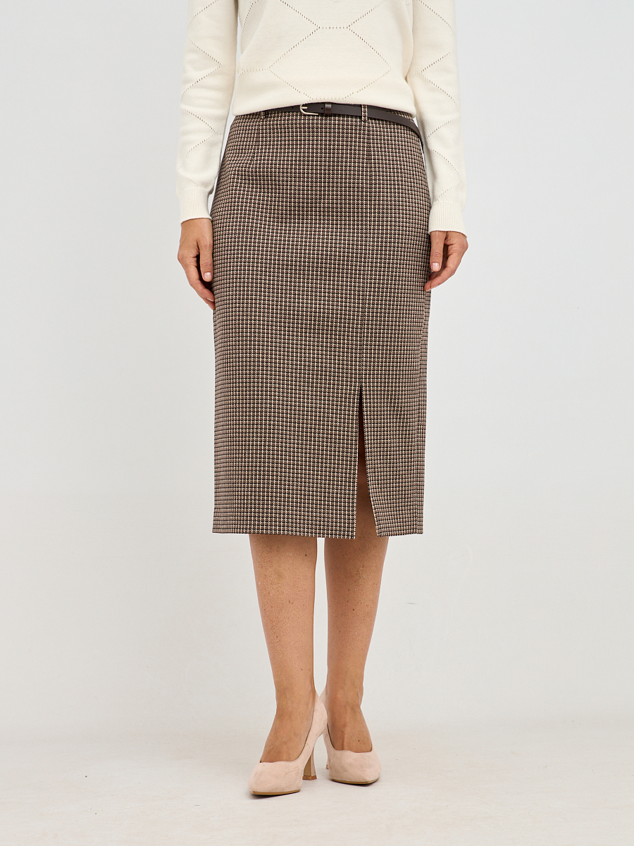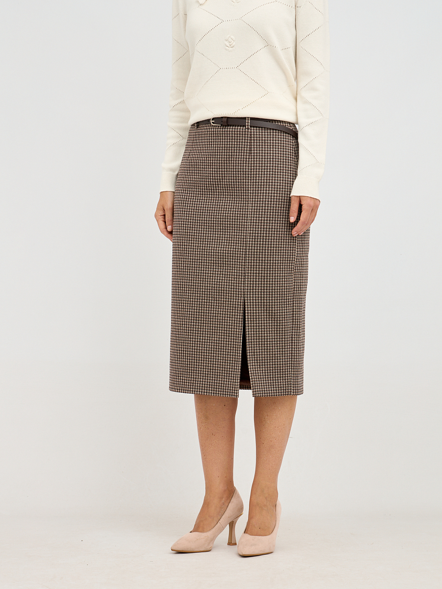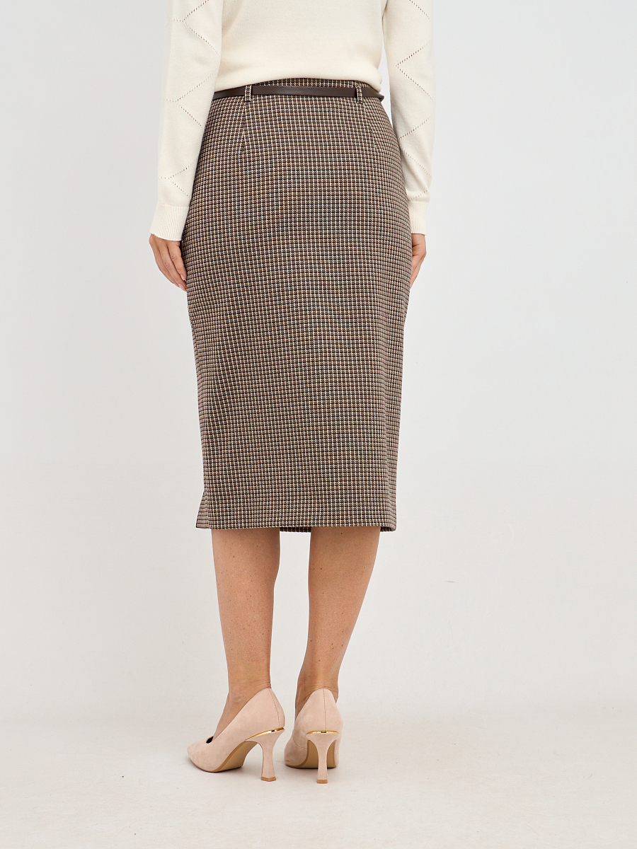 Эта элегантная юбка-карандаш выполнена в классическом клетчатом узоре, который никогда не выходит из моды и придает образу изысканность. Её приталенный силуэт визуально стройнит и подчеркивает достоинства фигуры. Тонкий ремешок на талии добавляет акцент и позволяет регулировать посадку юбки, делая её идеальной для разных типов фигуры. Длина чуть ниже колена является универсальной и подходит как для офиса, так и для повседневных образов.