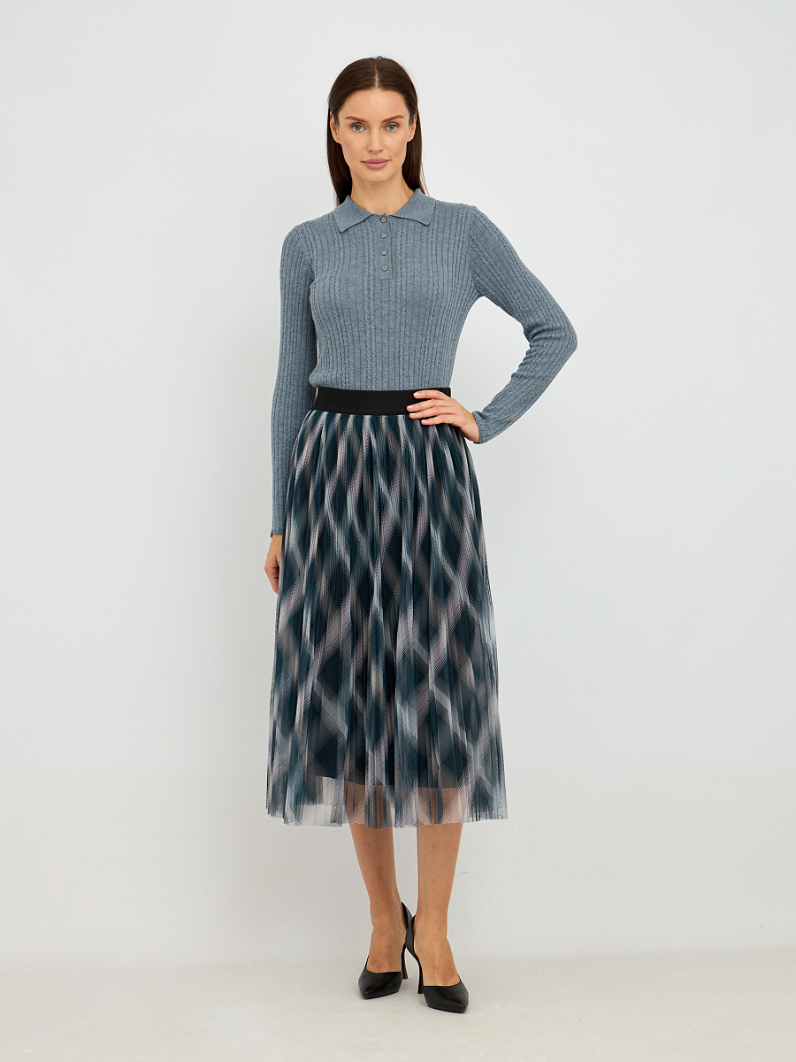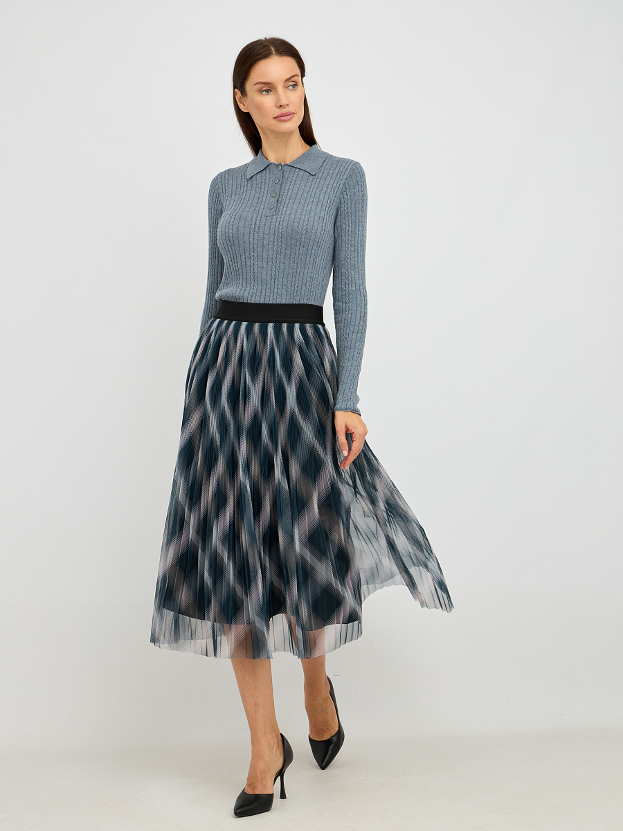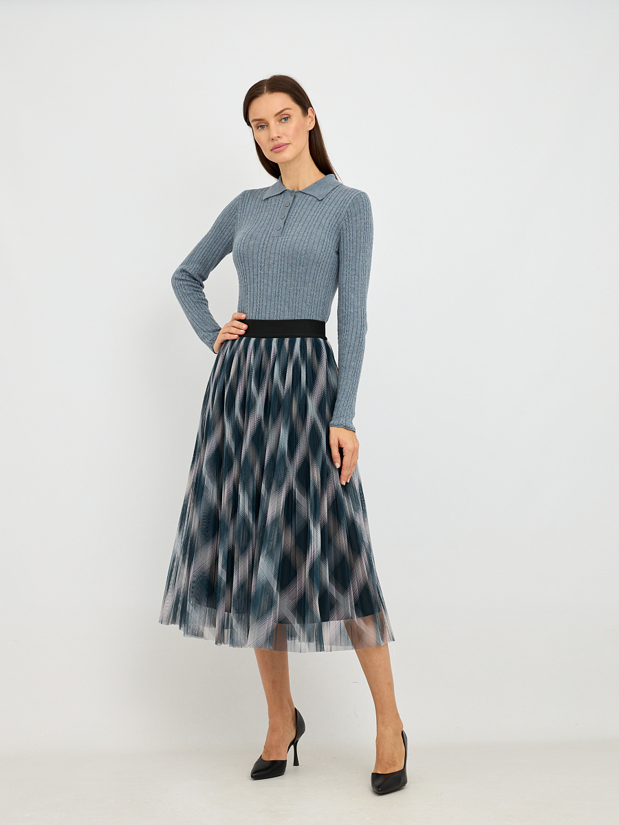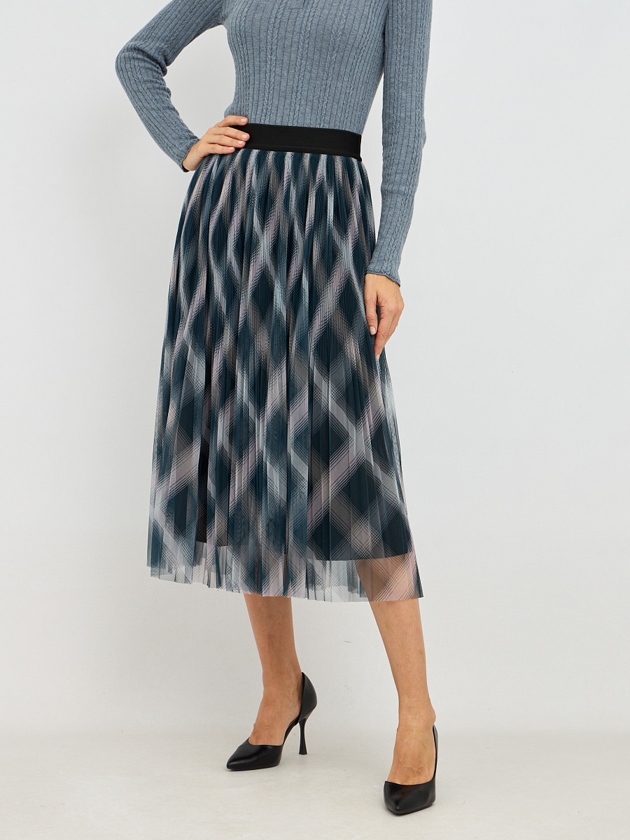 Особенностью дизайна является интересный рисунок, напоминающий ромбы, который придает юбке уникальность и современный вид. Такой принт делает юбку не только элегантной, но и модной, позволяя создать запоминающийся образ.