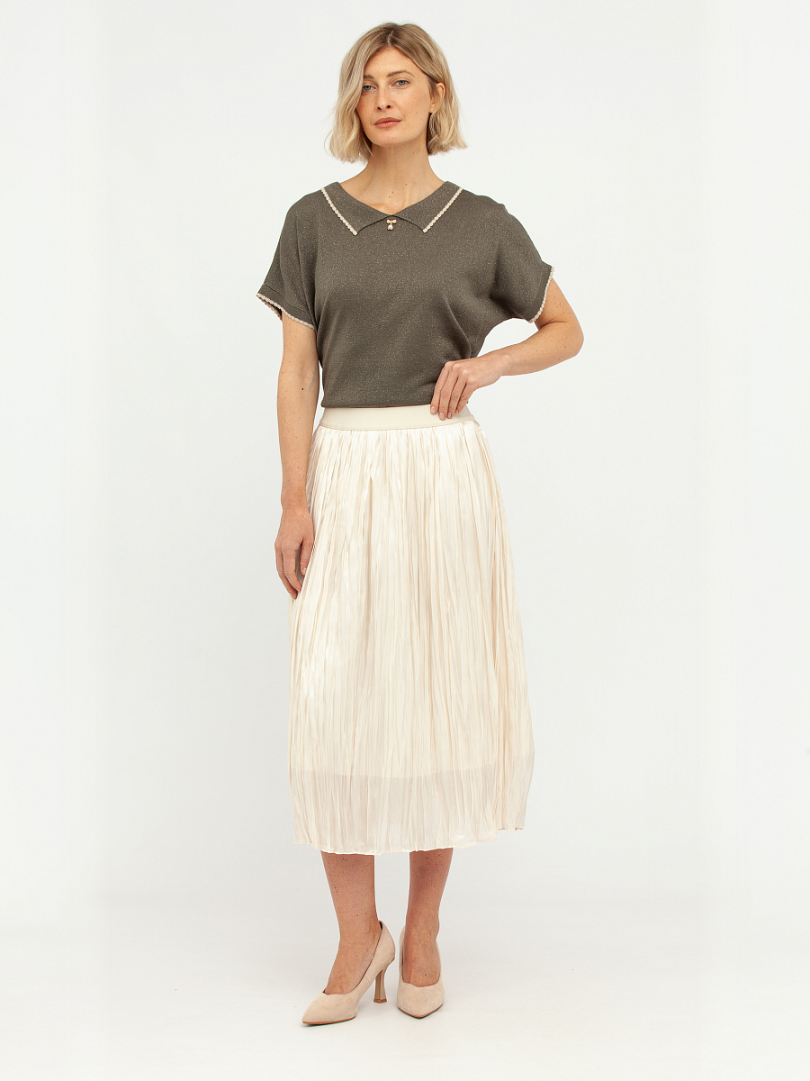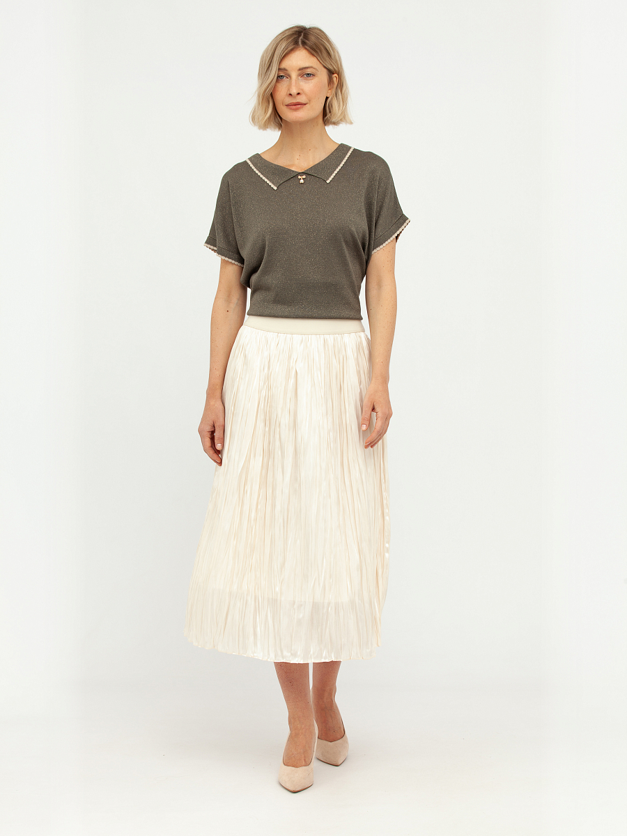 Эта изысканная плиссированная юбка – воплощение элегантности и женственности, идеально подходящая для создания как повседневных, так и более нарядных образов. Её характерная особенность – эффектные, мелкие складки, которые создают потрясающий объем и динамику при каждом движении. Комфортный пояс на мягкой резинке обеспечивает идеальную посадку по фигуре, гарантируя удобство в течение всего дня, при этом элегантно подчеркивая талию.